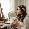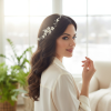Chic and stylish garland style comb - embellished with small clay flowers and simulated ivory pearls on a gold finish vine - size is approx 12 cm long