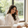 Bring enchantment to your day with this alluring flourish. A bed of delicate crystal embellished flowers are cocooned with clear cut crystals and simulated ivory pearls. An intricate finish to bring harmony and sweetness to your look. Details; High quality crystals. simulated ivory pearls and crystal embellished flowers. High shine silver finish with a white ribbon.
