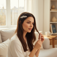 This sweet symphonic adornment of simulated ivory pearls and crystal embellished flowers brings a breathtaking femininity to your day. The fire and radiance of brilliant cut crystals frames the luminous aura of simulated pearls culminating in a sumptuous wave of romantic elegance; the perfect accompaniment for your special day. hand wired to perfection on a gold finish. Size is approx 7.5cm long Details; High quality crystals. High shine gold finish. Flexible for styling options. Dimensions; approximately 7cm length.