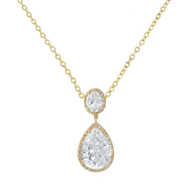 Cubic zirconia collection - sheer elegance crystal bridal necklace in a glamorous design with high quality cz crystals on a Gold finish. Pendant size is 3.5cm long x 1.5cm wide with an adjustable chain. Matching earrings are available see earrings category.