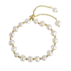 Elevate your elegance with our chic adjustable bracelet, featuring lustrous simulated pearls delicately set on a stunning gold adjustable chain. Designed to fit all wrist sizes, this versatile piece is the perfect accessory for brides and bridesmaids alike, adding a touch of sophistication to any ensemble. Embrace timeless beauty and make a statement on your special day with this exquisite bracelet.