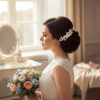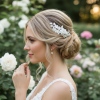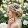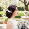 Get swept away in the romance of this tropical cascade of pristine porcelain plumeria blossoms, intricately woven along a golden bough. The pure delicate radiance of these stunning blooms is highlighted by the breathtaking femininity of shimmering ivory pearls. A delicate sonnet of romance to bring wonder to your magical day.