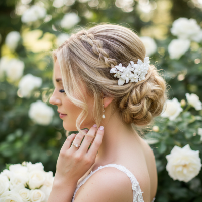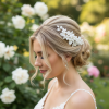 Get swept away in the romance of this tropical cascade of pristine porcelain plumeria blossoms, intricately woven along a golden bough. The pure delicate radiance of these stunning blooms is highlighted by the breathtaking femininity of shimmering ivory pearls. A delicate sonnet of romance to bring wonder to your magical day. Details; Handmade porcelain flowers. Simulated ivory pearls. High shine silver finish. Dimensions; 8cm length.