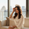 Bring divine femininity and angelic grace to your special day with this sublime floral halo. The celestial harmony of delicate porcelain blooms and glowing pearl focal points cultivates an aura of serene beauty; the perfect finishing touch for your heavenly day. Details; Handmade porcelain flowers. Simulated ivory pearls. High shine gold finish. Dimensions; embellishment approximately 8cm high