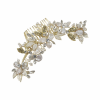 An iridescent splendour fit for the Goddess of Love- this pearl comb will gleam and sparkle, dazzling all. Ivory Keshi and seed pearls form shimmering floral elegance, Marquise cut and pavé set leaves bring fire and radiance. The perfect flourish for your perfect day. Details; • Simulated seed and Keshi pearls. • High quality crystals. • High shine gold finish. • Dimensions 14cm x 4.5cm with the comb itself measuring 5cm x 3cm.