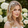 An iridescent splendour fit for the Goddess of Love- this pearl comb will gleam and sparkle, dazzling all. Ivory Keshi and seed pearls form shimmering floral elegance, Marquise cut and pavé set leaves bring fire and radiance. The perfect flourish for your perfect day.