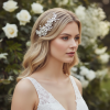 An iridescent splendour fit for the Goddess of Love- this pearl comb will gleam and sparkle, dazzling all. Ivory Keshi and seed pearls form shimmering floral elegance, Marquise cut and pavé set leaves bring fire and radiance. The perfect flourish for your perfect day. Details; • Freshwater seed and Keshi pearls. • High quality crystals. • High shine silver finish. • Dimensions 14cm x 4.5cm with the comb itself measuring 5cm x 3cm.