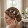Bejewelled Romance hair pin in a chic and elegant design - embellished with high quality clear crystals, simulated ivory pearls and hand painted silver finish leaves on a silver finish pin. Size of crystal embellishment is 6cm x 3cm and length including the hair pin is 10cm.