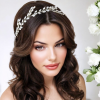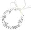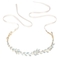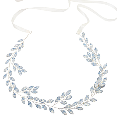 Entwine this captivating hair vine through your hair and let the softly shimmering beauty enhance your blissful glow. A gorgeously romantic piece rich with gleaming blue opal crystals . A breathtaking look for your glorious day as your hearts entwine for all time. Details; simulated opal glass crystals. Silver finish vine with a light ivory satin ribbon.