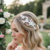 Blush beauty hair comb - simply beautiful - embellished with hand painted blush pink leaves, clear glass marquise crystals and pretty clay flowers on a sparkly silver finish. Size is approx 8cm long