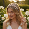 Embrace the free-spirited charm of this boho-chic hair comb. The intricate vine design, adorned with lustrous pearls and shimmering crystals, adds a touch of enchantment to any hairstyle.