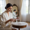 Bring a silver kiss of crystal and pearl radiance to your day of wonder with this enchanting vine set complete with matching earrings. Embellished with glowing Marquise glass crystals. The intensely set crystal work is offset beautifully by a sparkly silver vine. Perfect for celebrating a match made in heaven. Details; High quality clear crystals. High shine silver finish. Finished with ivory satin ribbon. Matching earrings. Vine Dimensions -length 38cm x 3cm wide. Earring size is 4cm x 2cm