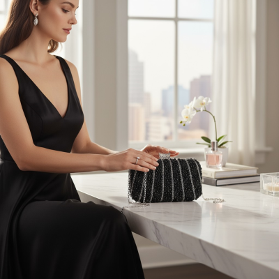 ATHENA COLLECTION - CHIC PEARL CLUTCH BAG - JET