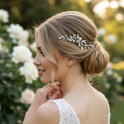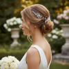Adorn your locks with the sumptuous shimmering opulence of pearl and crystal magic. This lyrical wave of majesty is highlighted by a glorious large pearl, around which a halo of Marquise cut crystals and glowing pearls flow. The idyllic feminine confection to crown your dream day attire.