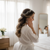 Bring a golden kiss of crystal and pearl radiance to your day of wonder with this enchanting vine set complete with matching earrings. Glowing seed pearls luminesce amongst Marquise crystal leaves. The intensely set crystal work is offset beautifully by a warm golden vine evoking harmony between earthly rose gold tones and astral silver hues. Perfect for celebrating a match made in heaven. Details; High quality clear crystals. Freshwater pearls. High shine rose gold finish. Finished with ivory satin ribbon. Matching earrings included. Vine Dimensions length 38cm x 3cm wide. Earring size is 4cm x2cm