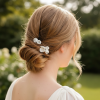 Bring enchantment to your day with this alluring flourish of hair pins. Each pin is styled with porcelain flowers and embellished with clear crystals to bring harmony and sweetness to your look. Details; High quality crystals. Ivory porcelain flowers. High shine silver finish.