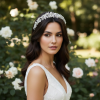 Chic and stylish headband - exquisitely designed - embellished with high quality clear crystals and simulated ivory pearls on a silver headband. Size is 16cm x 4cm