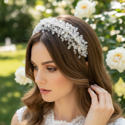 Comfortable to wear and effortlessly stylish, this headband adds a graceful finishing touch to both classic and contemporary hairstyles. Perfect for brides and bridesmaids, it is an exquisite accessory for weddings, formal occasions, or special celebrations, enhancing any look with timeless glamour.