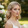 Stunning Crystal embellished hair comb- Embellished with clear crystals and pale blush pink petals on a gold finish . Size of comb is 9.5cm long and 7cm long.