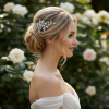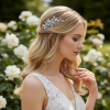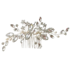 Set on a polished silver finish, the design offers a refined and luminous look that complements both classic updos and romantic flowing styles. Measuring approximately 13 cm x 6 cm, this statement comb provides graceful coverage while maintaining a delicate, sophisticated profile. A truly elegant finishing touch for any bridal or formal ensemble.