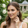 Radiate show stopping elegance with these Exquisite Earrings. *Flawless Pink cut crystals *Earring size is 4.2cm .These chic and stylish earrings will elevate your look with its astral fire and brilliance. The high quality crystals create an exquisite, red carpet-worthy aesthetic that will have all eyes on you. Whether you're the bride, bridesmaid, or guest, these earrings will make you feel like a star. Gold finish.