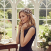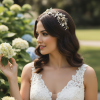 Evoke spellbinding beauty with the ethereal femininity of this breathtaking vine. Rich with delicate hand painted leaves, freshwater pearls and sparkling crystals, this intricate piece is sure to delight. Delicate crystal drops and pearl petalled flowers evoke the beauty of a fairytale wedding, where noble princes, white horses and magical castles hold sway. Embrace the magic of your story with this enchanting headpiece, fit for a princess on her special day.