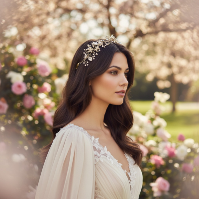 Evoke spellbinding beauty with the ethereal femininity of this breathtaking vine. Rich with delicate hand painted leaves, freshwater pearls and sparkling crystals, this intricate piece is sure to delight. Delicate crystal drops and pearl petalled flowers evoke the beauty of a fairytale wedding, where noble princes, white horses and magical castles hold sway. Embrace the magic of your story with this enchanting headpiece, fit for a princess on her special day.