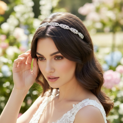 Vintage-Inspired Crystal Headband Exquisite and timeless, this vintage-inspired headband showcases sparkling clear crystals meticulously arranged along a shimmering silver-finish band. Its refined design brings a touch of classic elegance and radiant sparkle, perfect for brides, bridesmaids, or any special occasion. Details: High-quality clear crystal embellishments Sparkling silver-finish band Vintage-inspired design