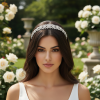 Chic and stylish, this crystal-embellished headband is a striking accessory that combines elegance with contemporary flair. Adorned with sparkling crystals set on a polished silver finish, it radiates refined shimmer and timeless sophistication. The crystal detailing measures approximately 21 cm in length and 3.5 cm in width, creating a beautifully balanced silhouette that sits gracefully within the hairstyle. Perfect for brides, bridesmaids, or special occasions, this headband adds a dazzling finishing touch to any elegant look.
