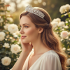 Radiating elegance and refined sparkle, this divine crystal tiara is beautifully embellished with clear glass crystals in a unique, eye-catching design. Crafted to enhance bridal and formal looks with understated glamour, it offers a timeless silhouette that feels both modern and romantic. Details: Embellished with clear glass crystals Unique, elegant design Refined, luminous finish Dimensions: 12.5 cm diameter × 3.5 cm high