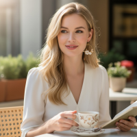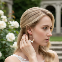 Integrate the lyrical luxury of bewitching porcelain orchids and shimmering pearl highlights, and allow the captivating femininity of exquisite blossoms suspended on a circle of silver to add just the right touch of mystique to enhance your look.