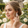 Delicately crafted, these dainty drop earrings feature a stylish design adorned with handcrafted clay flowers and luminous freshwater pearls, set against a polished silver finish. Their graceful silhouette and natural-inspired details make them a perfect choice for weddings, bridesmaids, formal occasions, or everyday elegance.