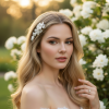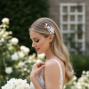 This sweet symphonic adornment of clay and pearl encrusted flowers brings a breathtaking femininity to your day. The elegance of cascading flowers and simulated ivory pearls culminating in a sumptuous wave of romantic elegance; the perfect accompaniment for your special day. Details; clay flowers. High shine gold finish. simulated pearls. Flexible for styling options. Fitted with a crocodile clip. Dimensions; approx 9cm x 3cm