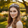 Delicately elegant with a touch of modern glamour, the Chic Starlet Tiara is beautifully embellished with sparkling cubic zirconia crystals that catch the light from every angle. Crafted on a high-quality silver finish, its refined silhouette offers timeless sophistication—perfect for brides, bridesmaids, and special occasions.