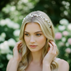 Bring enchantment to your day with this alluring flourish. A bed of delicate crystal embellished flowers are cocooned with clear cut crystals and simulated ivory pearls. An intricate finish to bring harmony and sweetness to your look. Details; High quality crystals. simulated ivory pearls and crystal embellished flowers. High shine silver finish with a white ribbon.