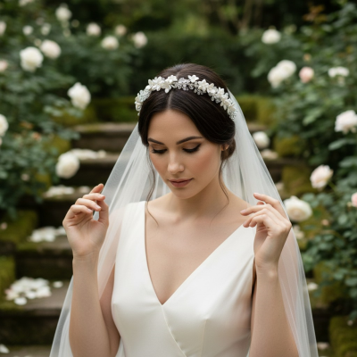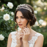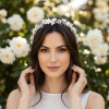Bring enchantment to your day with this alluring flourish. A bed of delicate clay flowers are cocooned by a cloud of marquise crystals clear cut crystals and crystal drops. An intricate finish to bring harmony and sweetness to your look. Details; High quality crystals. High shine rose gold finish.