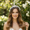 Bring enchantment to your day with this alluring flourish. A bed of delicate clay flowers are cocooned by a cloud of marquise crystals clear cut crystals and crystal drops. An intricate finish to bring harmony and sweetness to your look. Details; High quality crystals. High shine silver finish.