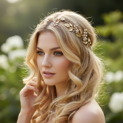Bring a golden kiss of crystal radiance to your day of wonder with this enchanting vine. Glowing crystals luminesce amongst Metallic gold leaves. The intensely set crystal work is offset beautifully by a warm golden vine evoking harmony between earthly gold tones and astral silver hues. Perfect for celebrating a match made in heaven. Details; High quality clear crystals. High shine dark gold finish.