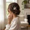 To complement the clay flowers, the flourish hair pin also features freshwater pearls, which are known for their luminous beauty and timeless appeal. These pearls are carefully placed among the clay flowers, creating a harmonious blend of textures and colours that will surely catch the eye. Dimensions: approx 5cm x 8.5cm