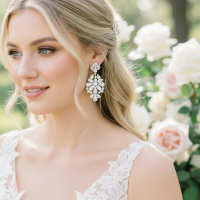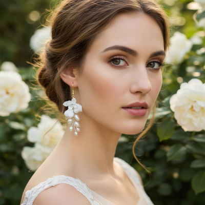 Vintage inspired earrings - Decadent clay flowers and freshwater pearls with silver vine leaves will enchant onlookers and bring an ethereal aura to your magical day. Details; High quality clay rose flowers, freshwater pearls. High shine gold finish. Dimensions;