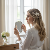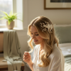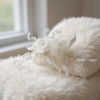 Adorn your tresses with the ethereal beauty of our Enchanted Bridal Hair Comb. This exquisite piece is a masterpiece of handcrafted artistry, featuring delicate clay flowers and leaf embellishments that bloom with lifelike charm. Each flower and leaf is meticulously hand-wired, allowing for flexible styling to perfectly complement your hairstyle. A shimmering silver finish enhances the delicate details of the flowers and leaves, creating an air of ethereal enchantment. This luxurious accent will complement any bridal ensemble, adding a touch of sophistication and glamour. Whether you envision a romantic up do, a cascading waterfall of curls, or a sleek and chic style, this Enchanted Bridal Hair Comb will elevate your bridal look to new heights. It is the perfect accessory to adorn your hair on your most memorable day. Dimensions: 11cm x5cm