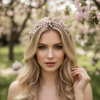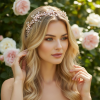 Enchanting blush pink hair vine - intricately designed with attention to details - embellished with simulated ivory pearls and blush pink crystals and hand painted blush pink flowers on a rose gold finish. Complete with white ribbon. Size is 33cm long and 3.5cm wide at the wides point.