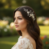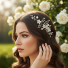 Floral Bloom hair comb - The romantic ethereal beauty of this spray is a feast for heart and eyes; delicate ivory flowers nestle sweetly in a cloud of sparkly clear crystals and simulated ivory pearls hand wired onto a gold vine. A beautiful finishing touch for your perfect day. Details; • ivory coloured flowers • Simulated pearls. • High quality crystals. • High shine gold finish. • Dimensions 22cm x 8.5cm.Flexible headpiece.