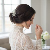 This ethereal beauty will capture your imagination and heart. A cascade of crystal and pearl flowers are haloed by a cloud of Marquise cut crystals and mother of pearl beading; the bonds of love symbolised by delicately hand painted blush leaves. A beautiful accompaniment to your special day.
