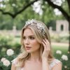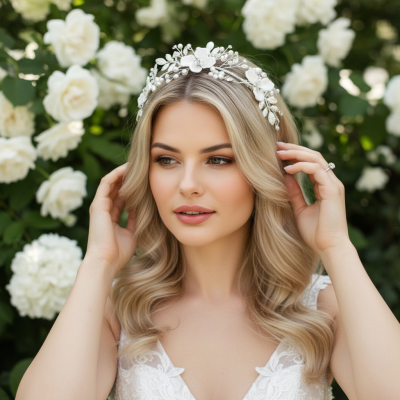 Adorn your locks with the romance of delicate handcrafted flower comb. Breathtaking romantic alchemy to enhance the feminine splendour of your magical look. Details; Handcrafted simulated pearl flowers. Silver finish.