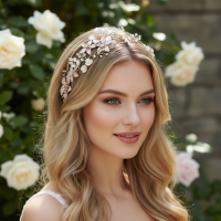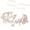 Enchanting vintage vine is truly stunning - embellished with freshwater pearls, hand painted blush pink flowers and clear crystals on a flexible high quality gold vine. Complete with ivory ribbon. Size of vine embellishment is 32cm long and 5cm wide at the widest point.