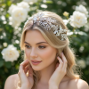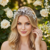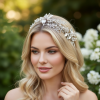 Enchanting vintage vine is truly stunning - embellished with freshwater pearls, hand painted silver flowers and clear crystals on a flexible high quality silver vine. Complete with ivory ribbon. Size of vine embellishment is 32cm long and 5cm wide at the widest point.