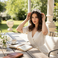 Captivating chic headband. A gorgeously romantic piece rich with light ivory pearls and radiant Pearl petalled flowers. A breathtaking look for your glorious day. The intensely set floral headband is offset beautifully with a silver finish double headband.