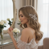 Floral bloom headpiece - The romantic ethereal beauty of this spray is a feast for heart and eyes; delicate hand painted silver flowers nestle sweetly in a cloud of simulated ivory pearls round cut crystals and blush pink leaves. A beautiful finishing touch for your perfect day. Details; • Blush pink coloured flowers • Simulated pearls. • High quality crystals. • High shine gold finish finish. • Dimensions approximately 21cm long flexible piece fitted with a silver crocodile clip