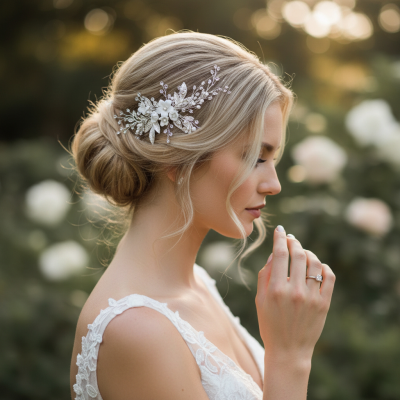 - ATHENA COLLECTION -EXQUISITE FLORAL EMBELLISHED HAIR COMB - SILVER - HC173